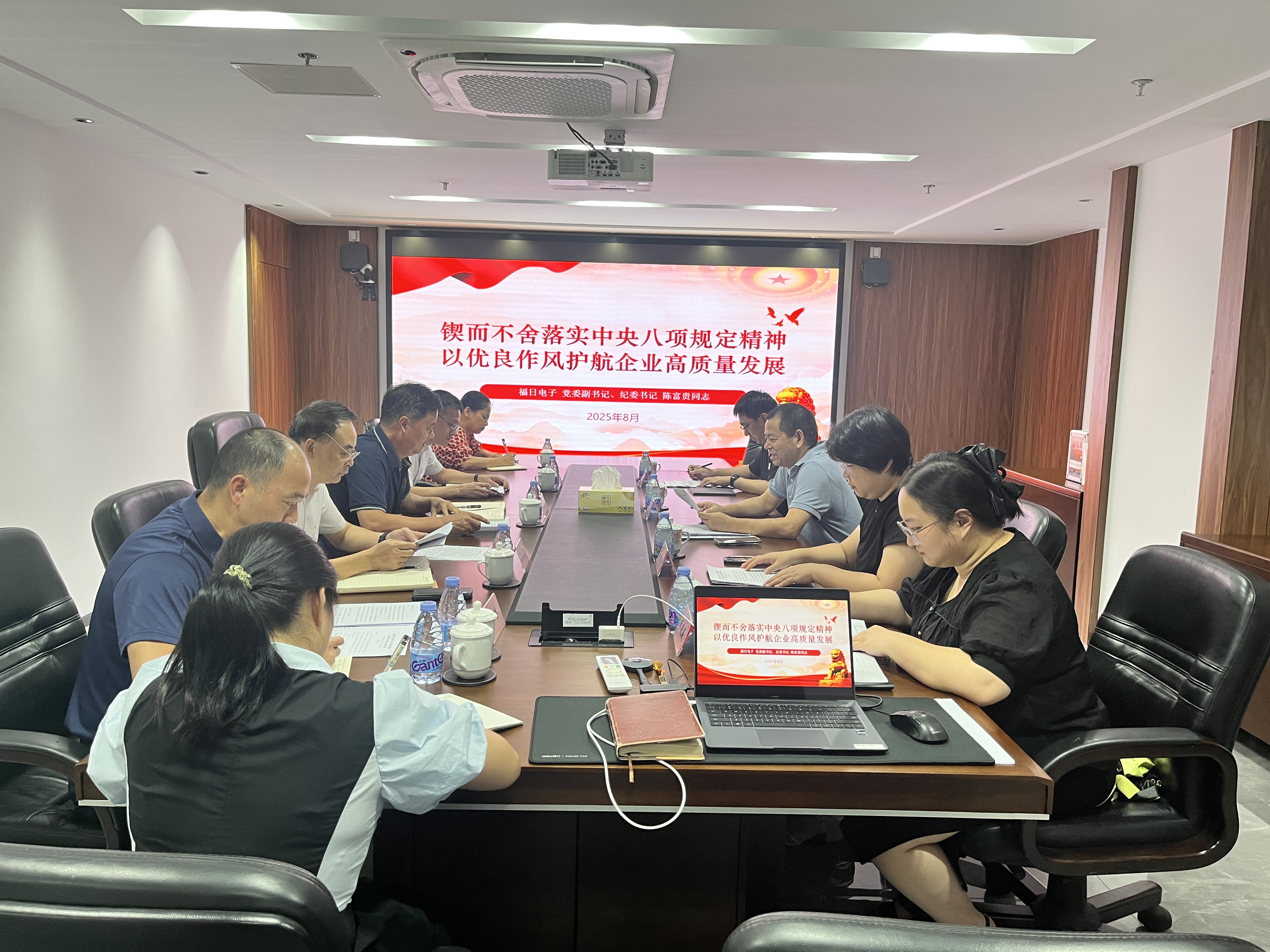 课上,陈富贵系统阐述了中央八项规定精神的核心要义与实践要求,强调党员干部要以此次学习教育为契机,筑牢信仰根基、绷紧纪律之弦、压实责任链条,切实把学习成果转化为强党性、转作风、促发展的实际成效。他强调,福日照明党支部要聚焦集团党委巡察反馈的重点问题,坚持从严从实抓整改工作,将巡察整改作为推动全面提升业务水平和管理效能的重要契机,与作风建设、党风廉政建设深度融合,持续推进全面从严治党向纵深发展,确保各项任务落到实处,为企业高质量发展提供坚强保障。
